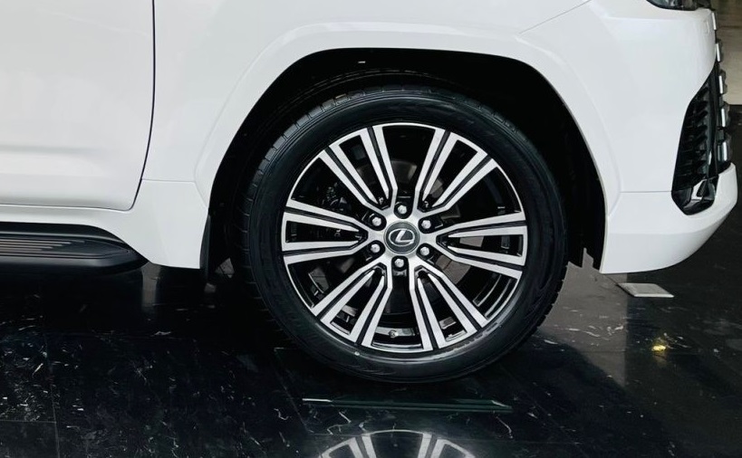 Vành xe LX 600 Urban 7 chỗ có kích cỡ 22 inch, to bản, được phay và sơn đen nhấn mạnh sự cao cấp và hiện đại