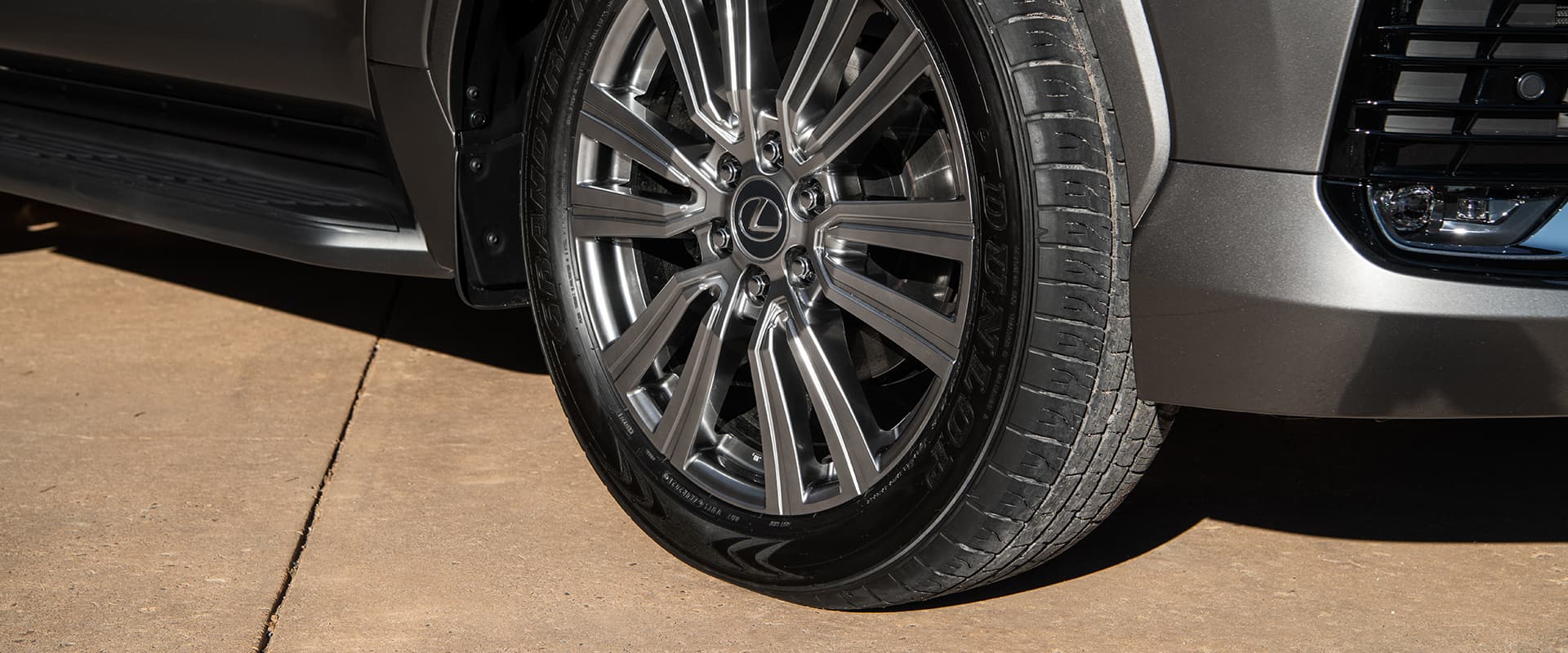 Vành xe LX 600 VIP 4 chỗ có kích cỡ 22 inch, to bản, được phay và sơn đen nhấn mạnh sự cao cấp và hiện đại