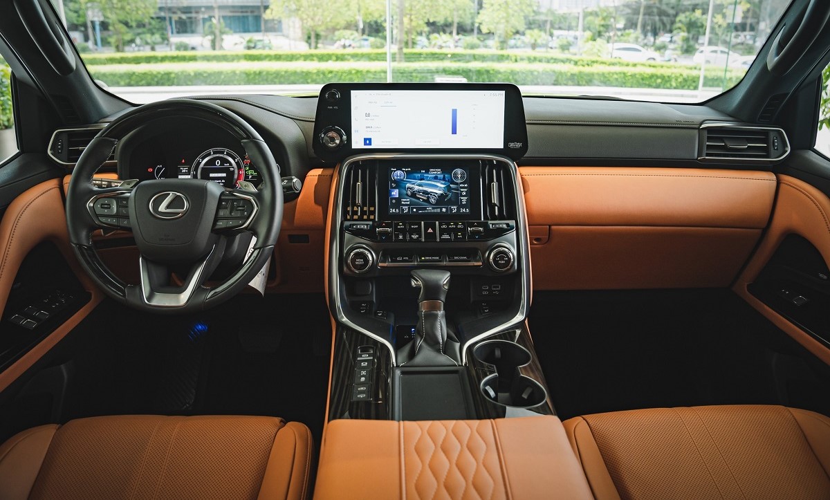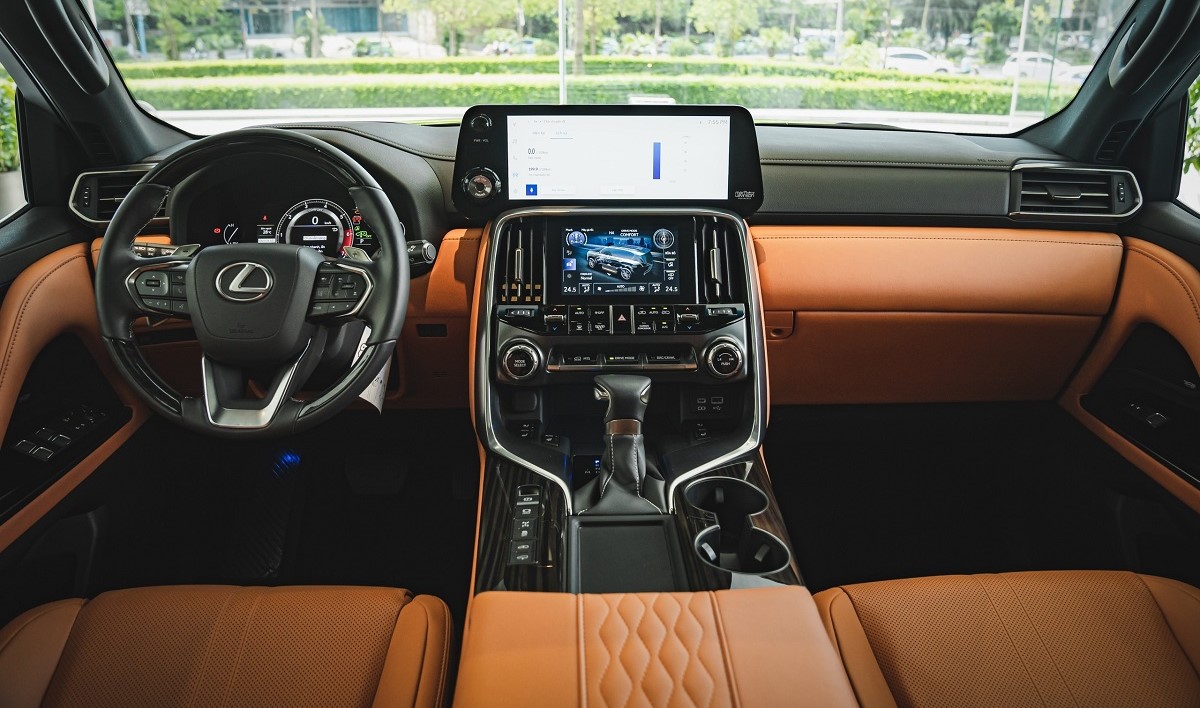 Không gian nội thất của LX 600 VIP 4 chỗ được thiết kế liền lạc và hiện đại nhưng cũng đầy mạnh mẽ và vững chãi đúng chất một chiếc SUV năng động. Các nút bấm được bố trí thành các vùng riêng biệt phù hợp với hoàn cảnh sử dụng, tạo ra một bố cục chức năng giúp giảm thiểu những thay đổi về tầm quan sát và tư thế trong quá trình vận hành, giúp lái xe thoải mái và an toàn.