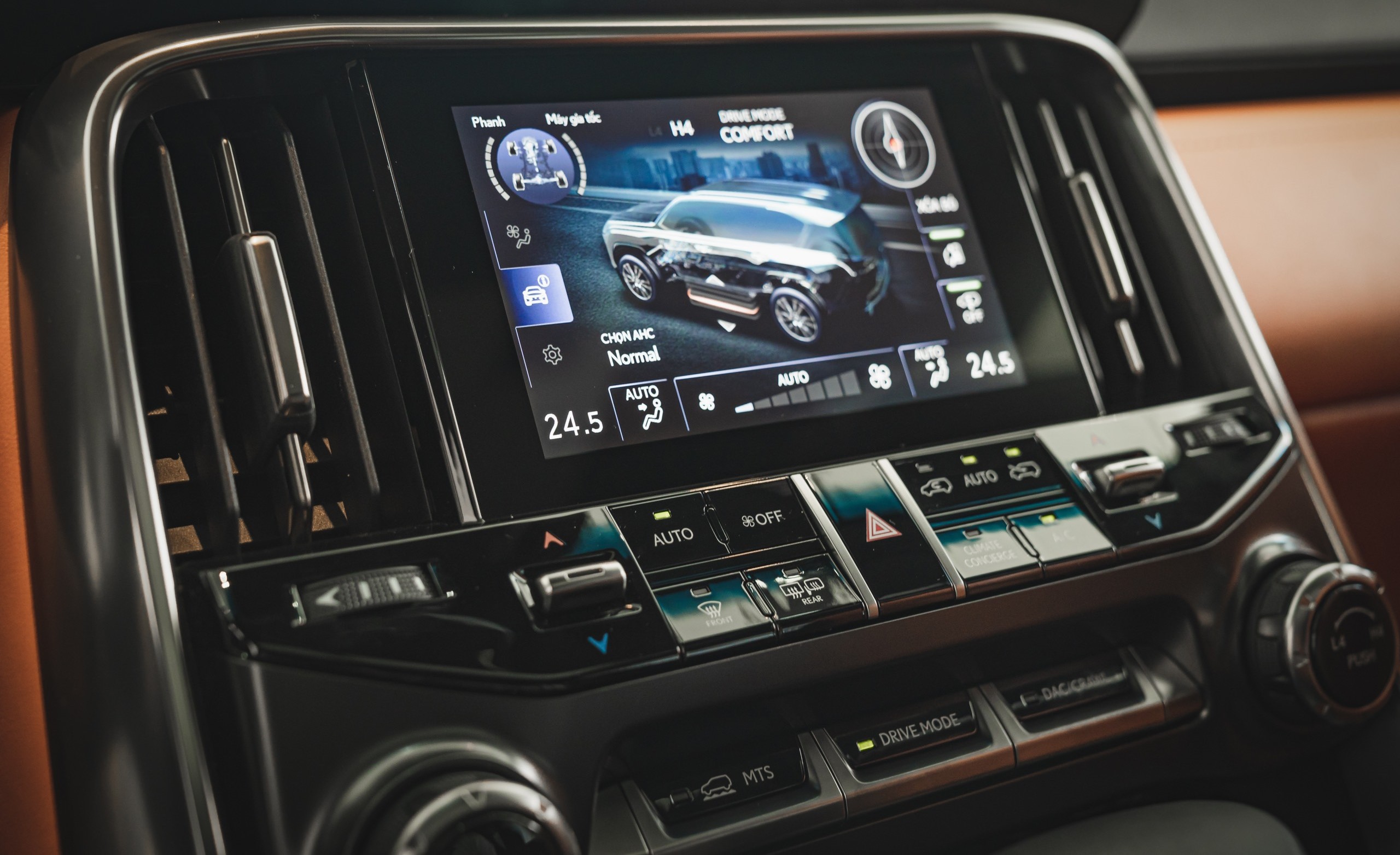Các nút bấm liên quan đến việc điều khiển xe trong khi dừng được bố trí trong khu vực bệ tỳ tay trung tâm.