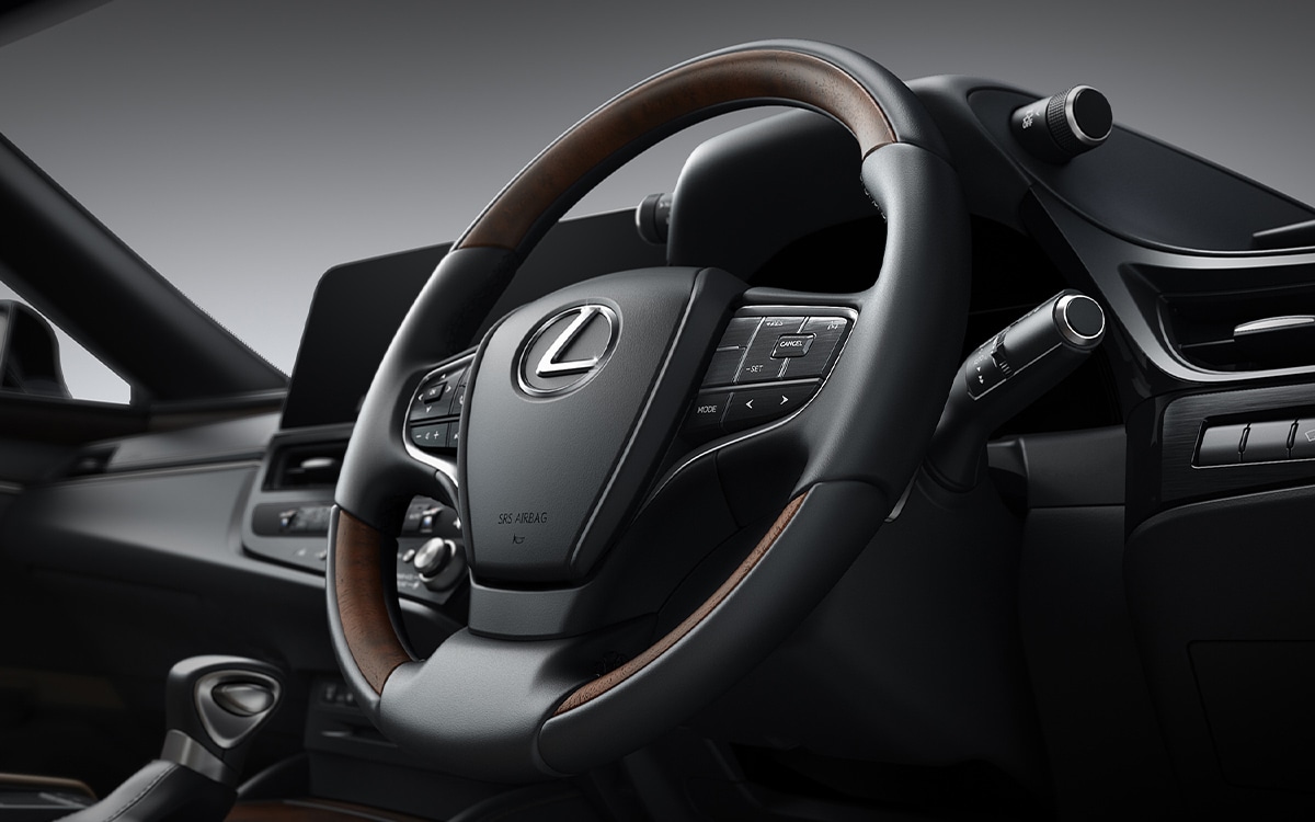 Lexus ES 250 được trang bị ốp gỗ nội thất Shimamoku dạng vân gỗ óc chó màu nâu dạng sần, sang trọng, không bám mồ hôi tay, thoải mái cầm nắm, tạo cảm giác lái dễ chịu, thư thái.