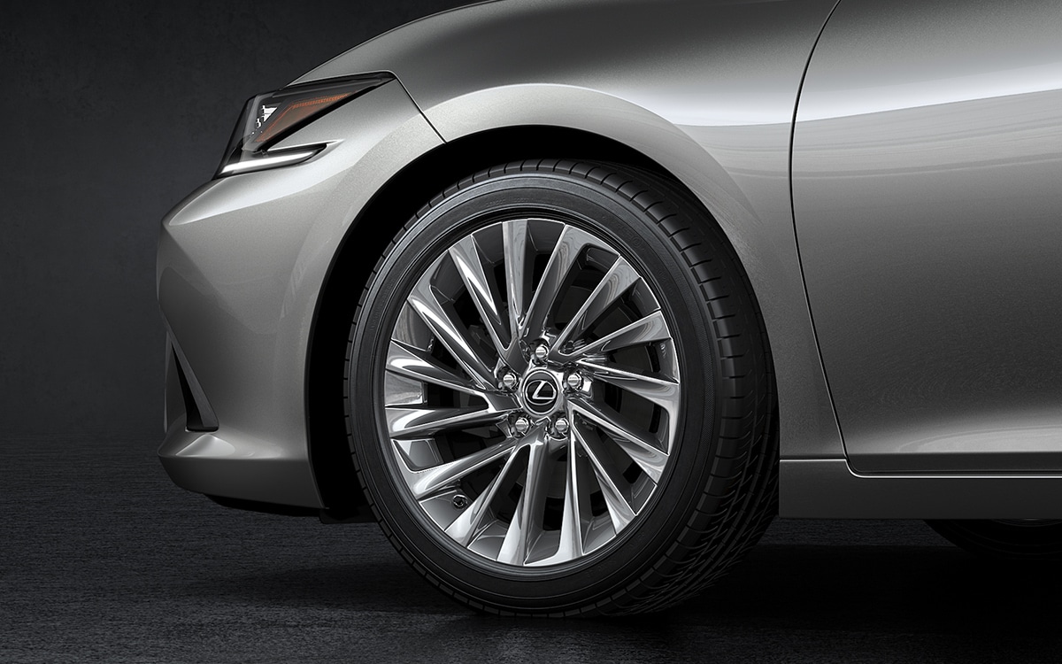Lexus ES 300h sử dụng vành nhôm đúc rỗng chân không 18 inch, với kết cấu đúc rỗng chân không, hạn chế tối đa tiếng ồn vọng vào từ bề mặt đường mỗi khi xe di chuyển. cả 4 lốp đều có cảm biến áp suất lốp hiển thị trên màn hình của xe.