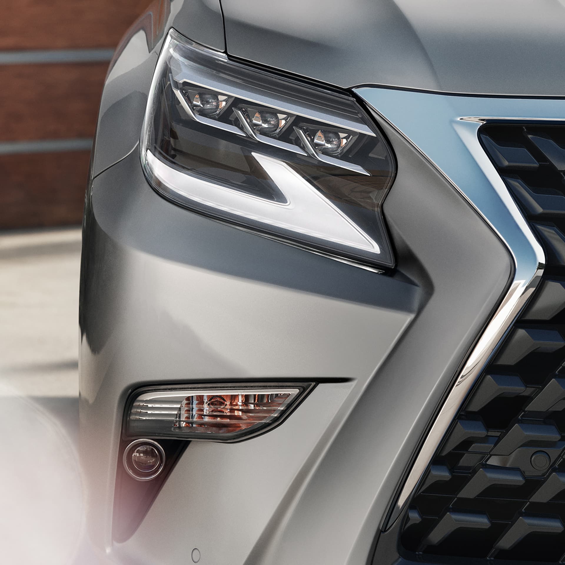 Lexus GX 460 toát lên sự mạnh mẽ và tinh tế, ngay từ ánh nhìn đầu tiên. Nổi bật ở vị trí trung tâm với lưới tản nhiệt hình con suốt, biểu tượng đầy kiêu hãnh của Lexus như một lời khẳng định đầy uy lực. Dải đèn LED ban ngày hình chữ "L" sắc sảo, như đôi mắt tinh anh sẵn sàng chinh phục mọi thử thách.