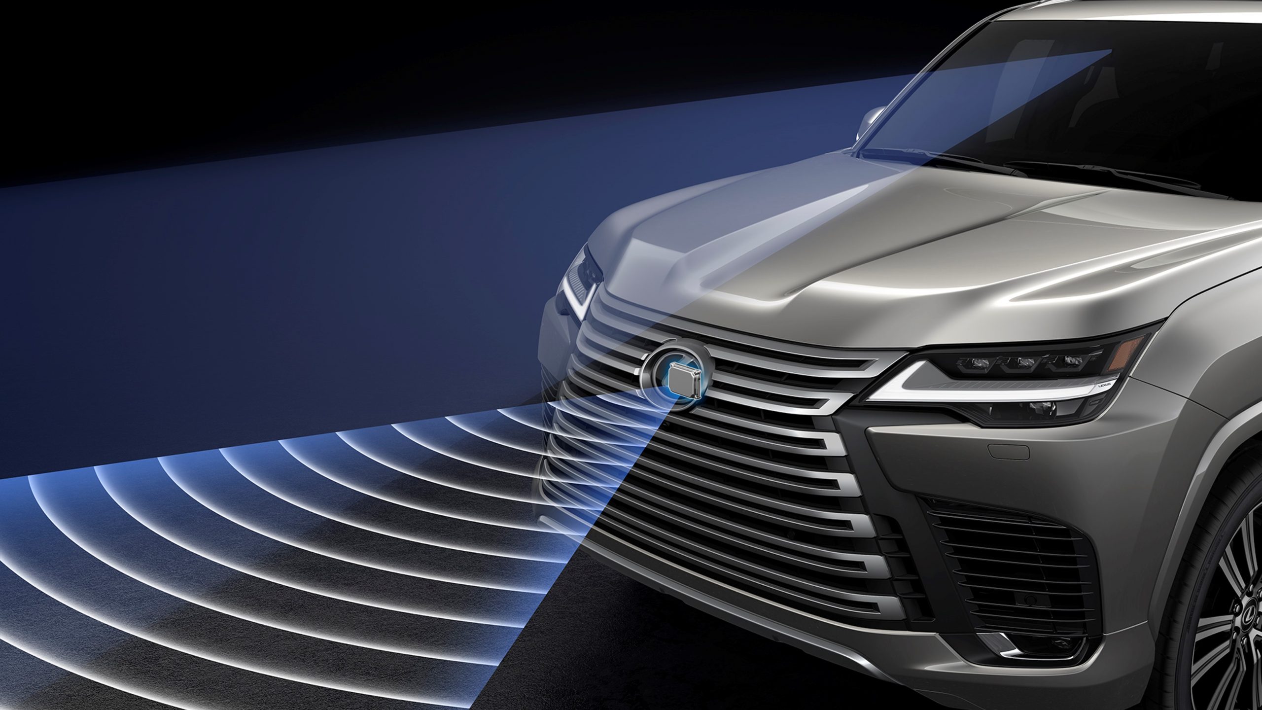 Lexus GX 550M có Hệ thống camera trên kính lái và rada bước sóng milimet nằm trong Logo xe phía trước tự động nhận biết các phương tiện đi phía trước, nếu có tình huống nguy hiểm dễ xảy ra va chạm thì sẽ tự động cảnh báo bằng âm thanh, hình ảnh và hỗ trợ phanh khẩn cấp nếu người điều khiển phương tiện không kịp xử lý tình huống.