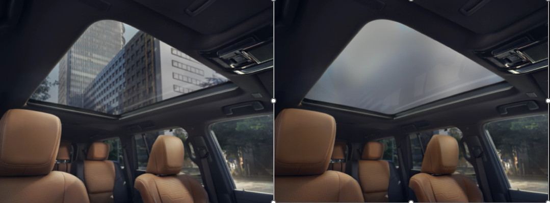cửa sổ nóc GX550 là dạng cửa sổ trời toàn cảnh và phần cửa kính cố định có chức năng làm mờ bằng điện, giúp ngăn chặn những tác động tiêu cực do ánh nắng trực tiếp nhưng vẫn mang đến cảm giác thoáng đãng bên trong không gian nội thất. Trong trường hợp quý khách không muốn dùng cửa kính do thời tiết nắng nóng tại Việt Nam, quý khách hoàn toàn có thể điều chỉnh đóng rèm điện lại cho mát mẻ