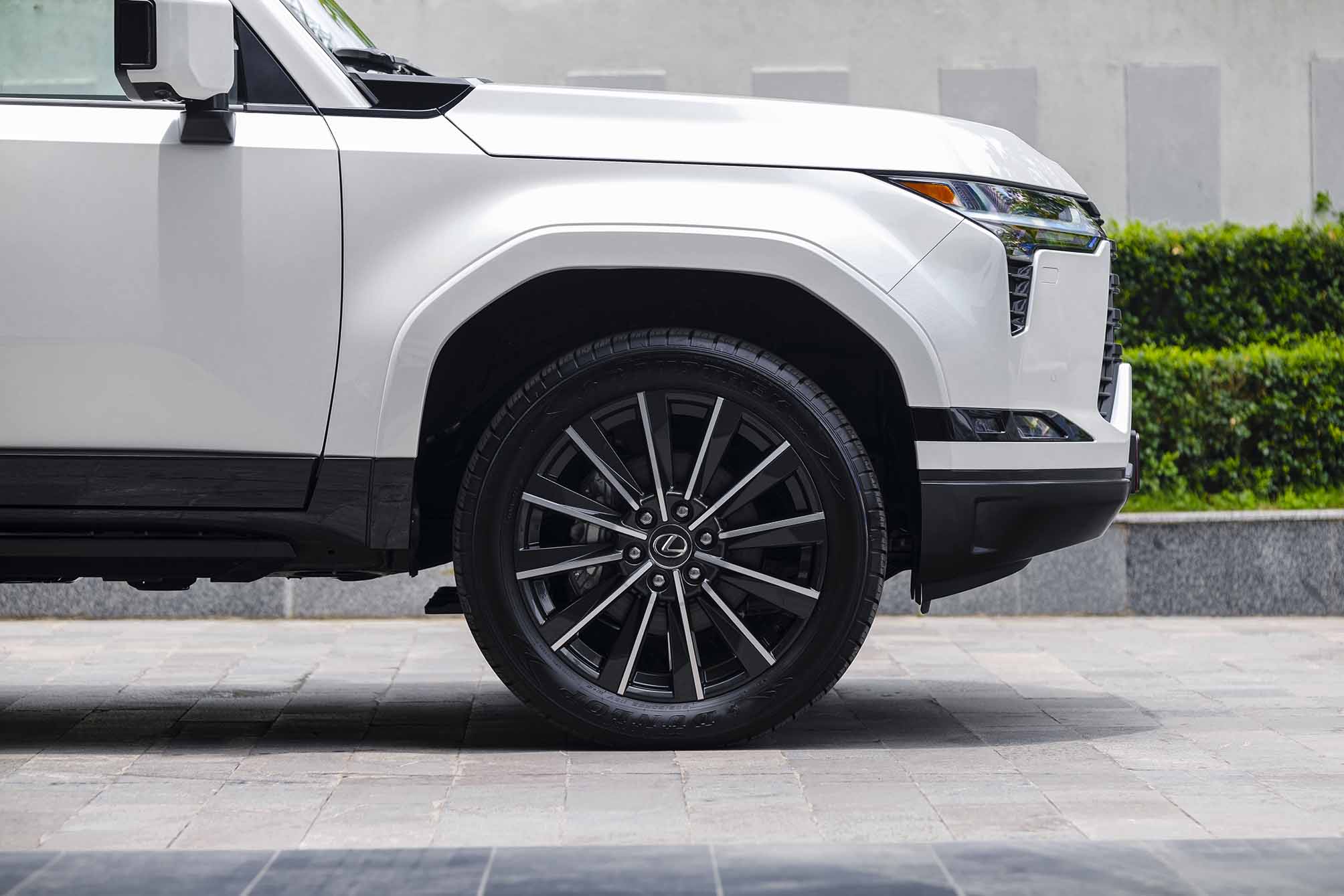 Vành xe GX 550M có kích cỡ 22-inch (GX460 có vành 18 inch) được dập nguyên khối từ hợp kim nhôm, có thiết kế kiểu 12 nan thẳng nhấn mạnh hình ảnh sang trọng và hiện đại, đi kèm lốp 265/55R22 giúp tối ưu khả năng vận hành.