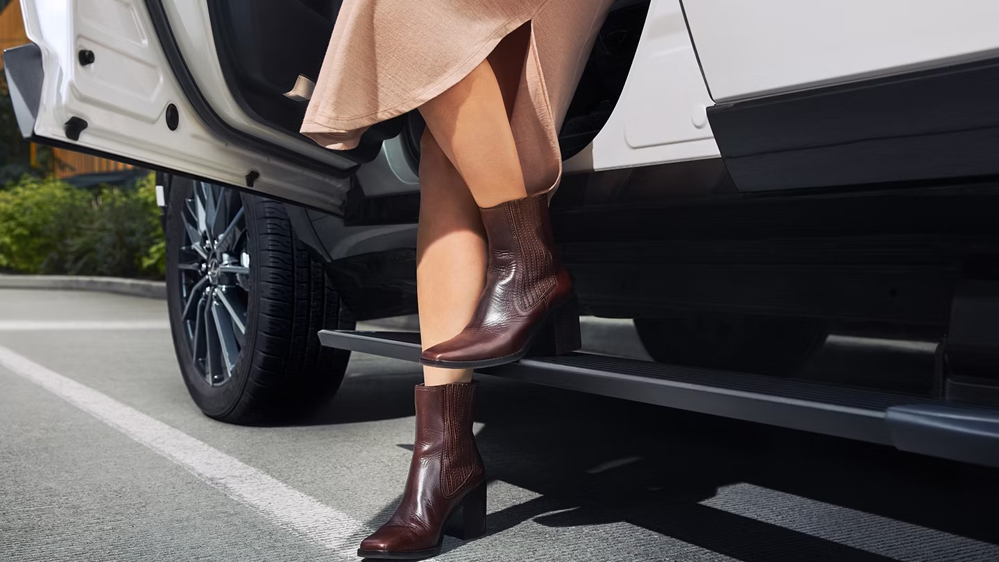 Phần bậc chân của xe được thiết kế là bậc chỉnh điện, tự động thò thụt khi đóng mở cửa xe theo từng bên cánh cửa, thuận tiện cho việc lên xuống cho khách hàng bởi GX 550M thế hệ mới có kích cỡ cao tới gần 2m. Phần bậc chân có tính năng tự động chống kẹt khi đang ra hay thu vào, đảm bảo an toàn cho quý khách.