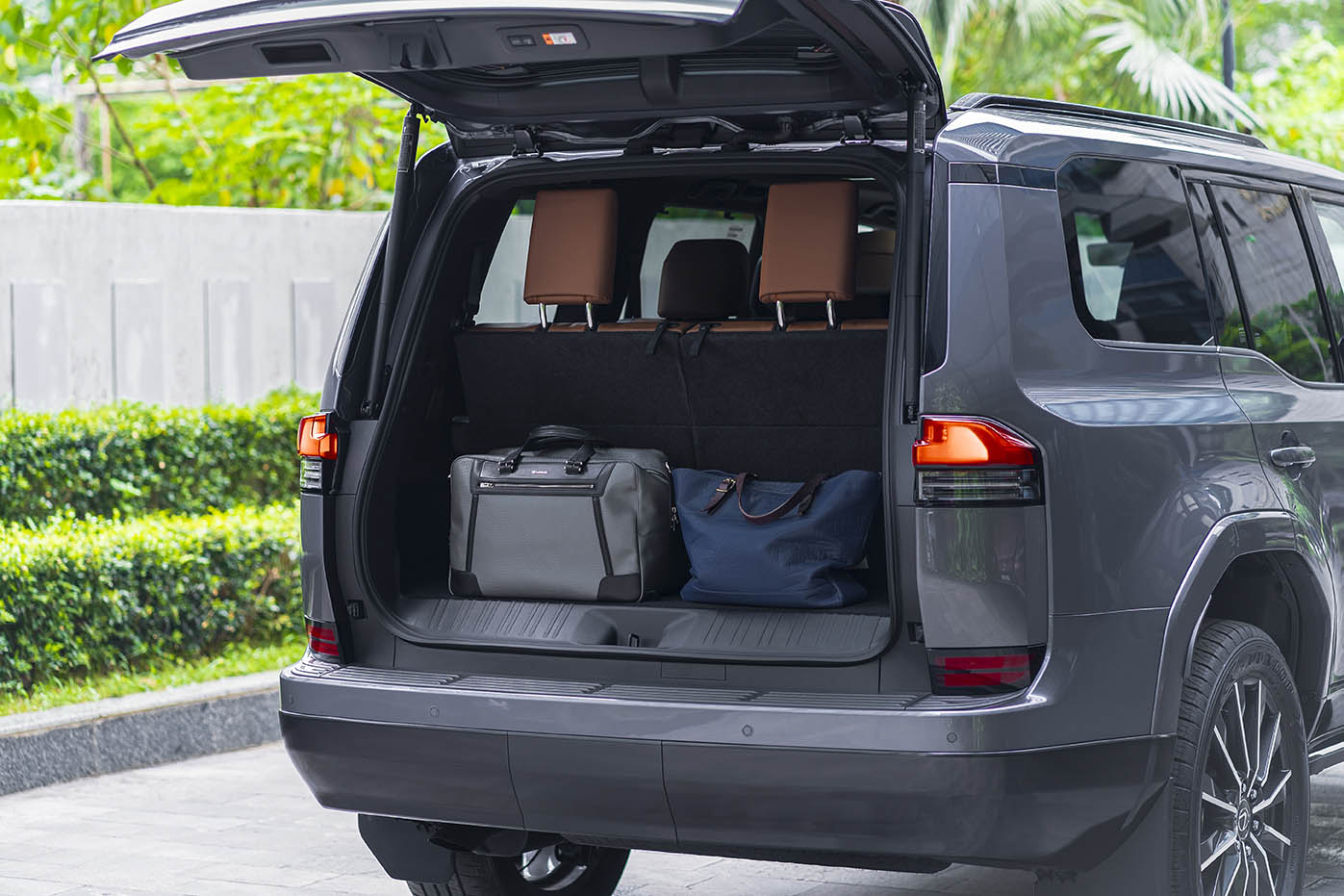 Khi gập hàng ghế thứ 3, tổng dung tích khoang hành lý GX 550M lúc này lên tới 1095 L, đủ không gian cho 4 túi golf cỡ lớn 47inch hoặc 5 va ly cỡ to. Và khay hành lý được trang bị nếu quý khách sử dụng 5 chỗ ngồi.