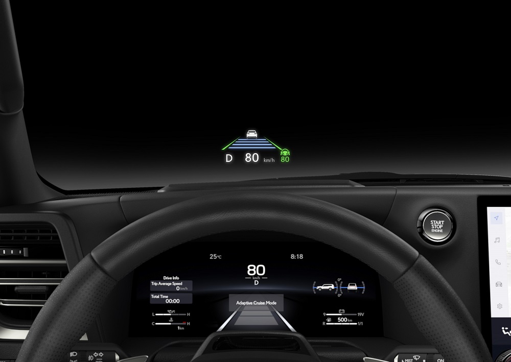 Màn hình hiển thị trên kính lái HUD rõ nét, giúp người lái quan sát và điều khiển xe dễ dàng hơn. Màn hình HUD hiển thị thông tin lái xe, các chế độ lái an toàn, bản đồ dẫn đường...