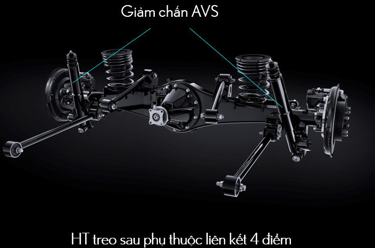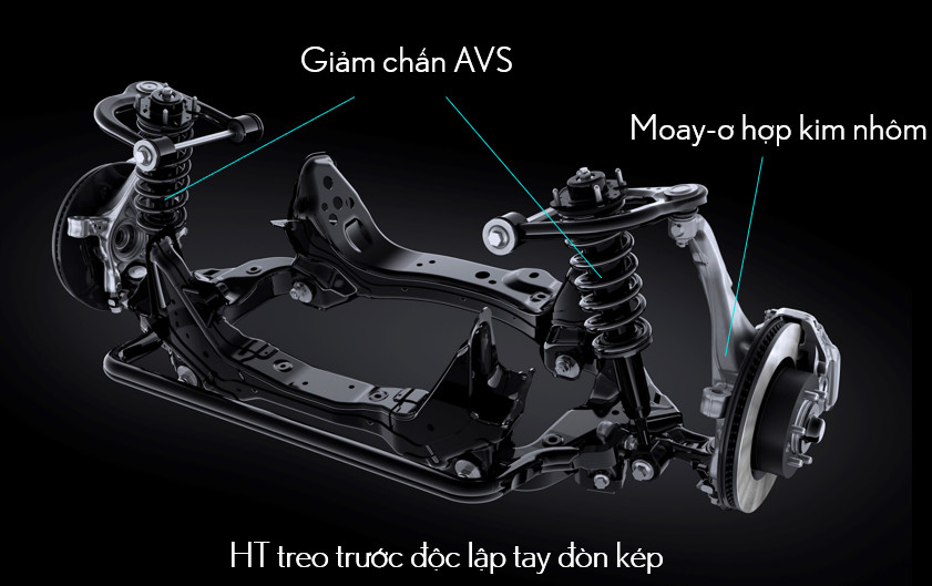 Cấu trúc hình học của hệ thống treo và hệ số đàn hồi của lò xo trụ được phát triển và điều chỉnh nhằm đảm bảo khả năng vận hành ổn định cũng như độ êm ái. Hành trình của hệ thống treo được gia tăng, với hành trình trả tăng thêm 0.60 inch (15mm) giúp tăng khả năng bám đường trên cả bề mặt on-road và off-road. Tiết diện mặt cắt ngang của tay đòn trên và dưới đều được gia tăng giúp nâng cao độ cứng vững của hệ thống treo và cầu trước, đồng thời cho phép lắp la zăng kích thước lớn 22-inch. Lò xo trụ được làm bằng thép độ bền cao (1300MPa) giúp giảm trọng lượng và cải thiện độ cứng vững. Moay-ơ được dập nguyên khối bằng hợp kim nhôm giúp tăng cứng và giảm trọng lượng, góp phần nâng cao khả năng vận hành ổn định và tiết kiệm nhiên liệu.