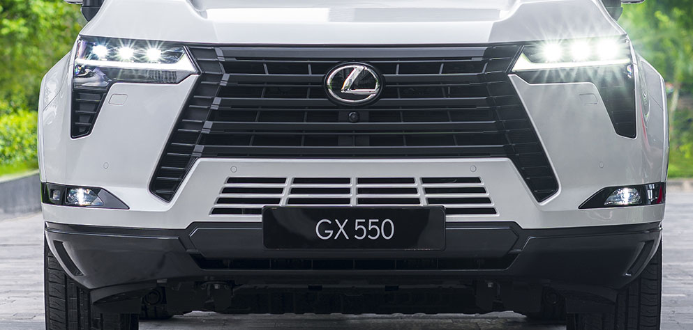 Cụm đèn trước của GX 550 được trang bị dải 3 bóng Full LED với công nghệ AHB, tự động điều chỉnh pha cốt (xa - gần) giúp chống chói cho các phương tiện khi lưu thông trên đường cao tốc. ở phía dưới đèn được trang bị đèn gầm và đèn mở rộng góc chiếu, giúp tăng khả năng quan sát khi đi ở các điều kiện đường, thời tiết khác nhau.
