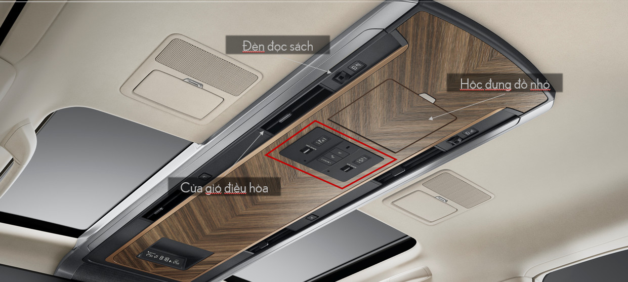 Bảng điều khiển trên trần xe nằm ở chính giữa hàng ghế sau. Ngoài cửa gió điều hòa, đèn đọc sách cá nhân và hộc đựng đồ nhỏ, các nút điều khiển rèm cửa, rèm che nắng cửa sổ trời, hệ thống chiếu sáng và điều hòa không khí có thể được điều chỉnh thông qua các nút trên bảng điều khiển.