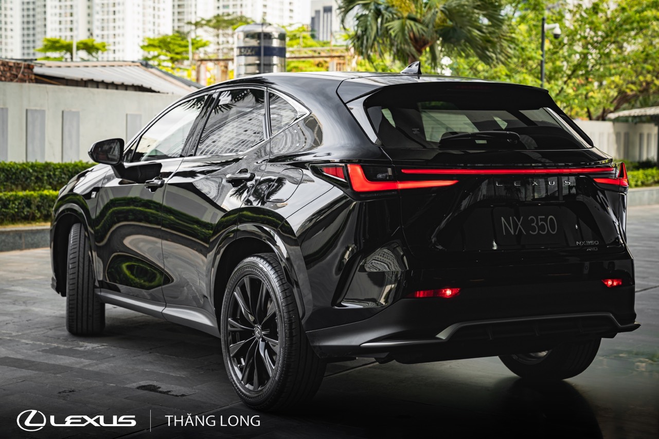 phần đuôi xe Lexus NX 350 F SPORT được thiết kế kiểu mới. Logo "L" được thay thế bằng logo dạng chữ LEXUS, tạo nên đặc điểm nhận dạng mới mẻ và hiện đại của thương hiệu. Logo LEXUS được đặt ở trung tâm của đuôi xe, trong khi tên mẫu xe được đặt ở phía dưới bên phải để tạo sự thống nhất trong thiết kế. Ngoài ra, phần hốc gắn biển số đã được loại bỏ giúp đảm bảo thiết kế liền lạc và mạnh mẽ lan sang hai bên của đuôi xe, thể hiện dáng vẻ sang trọng và đẳng cấp.