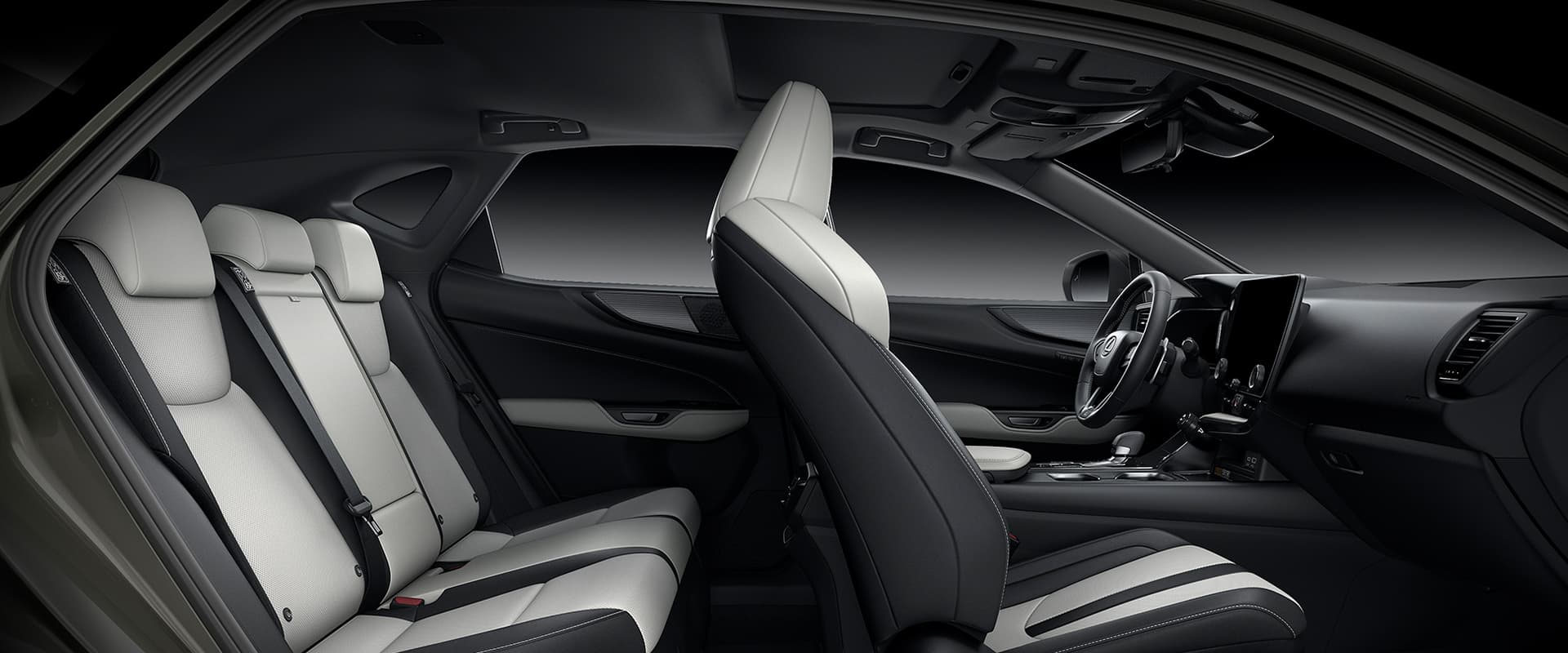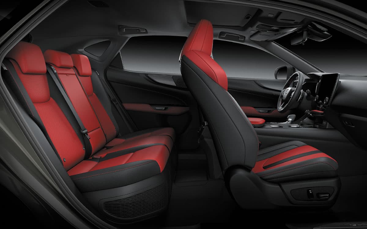 NX 350 F SPORT được trang bị ghế da cao cấp smooth của Lexus, với kết cấu đệm ôm sâu kết hợp cùng khung TNGA giúp duy trì tư thế lái xe thoải mái ngay cả khi lái xe đường dài và tư thế ổn định tuyệt vời khi vào cua. Hình dạng của phần trên của lưng ghế đã được tối ưu hóa để giữ cố định phần ngực dưới của người ngồi, ngăn đầu người ngồi lắc lư, góp phần tạo nên sự thoải mái khi lái xe