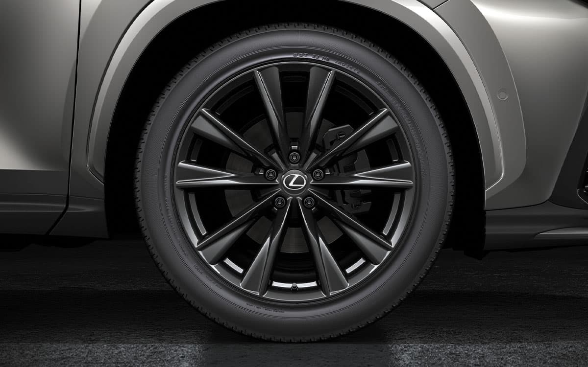 NX được trang bị các bánh xe kích thước lớn hơn - 20 inch với lớp sơn phủ đen ánh kim sáng bóng và các cạnh sắc nét đem tới cho xe một diện mạo mạnh mẽ.
