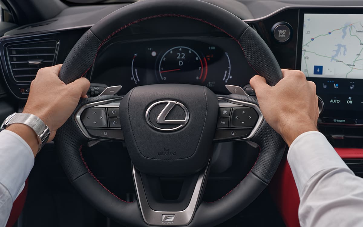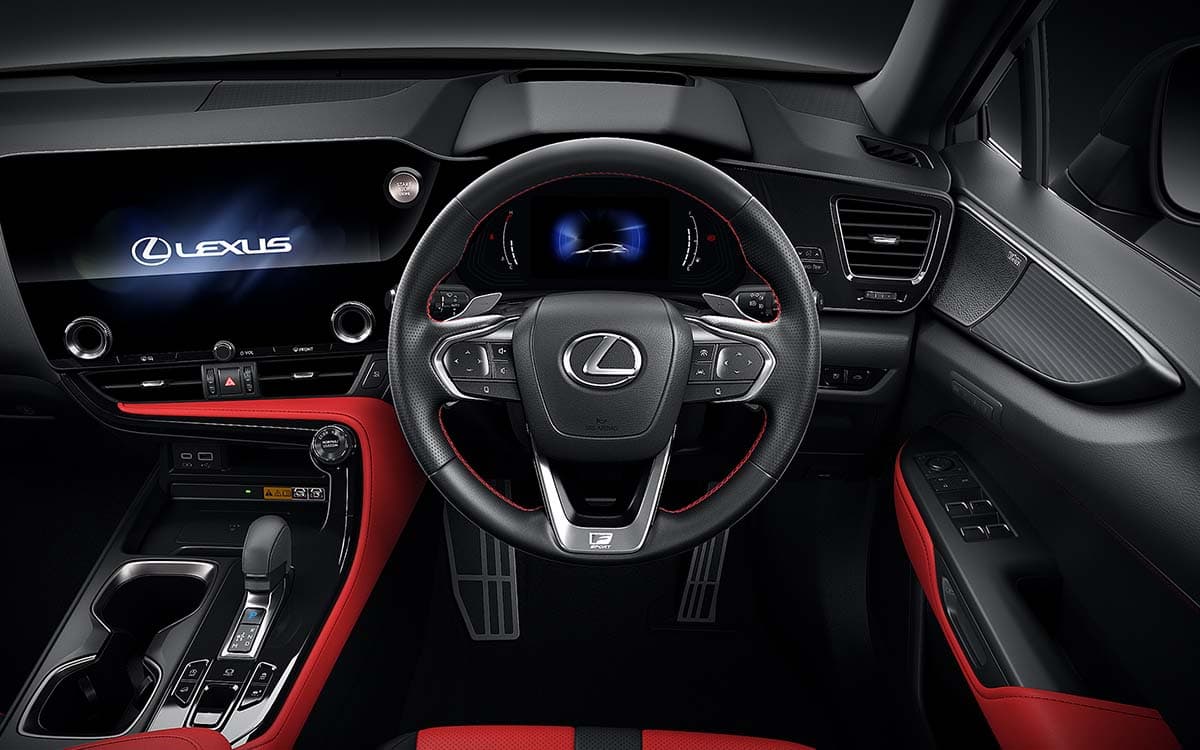 NX 350 F SPORT có phần Vô lăng được ốp gỗ ở phía trong và bọc da ở phía ngoài mang đến hình ảnh cao cấp và sang trọng, tích hợp lẫy chuyển số trên vô lăng. Trong khi vẫn giữ cảm giác bấm của các nút vật lý trước đây, chức năng cảm ứng đã được bổ sung để cho phép tương thích với các chức năng đa dạng, mang trải nghiệm điều khiển năng động và hiện đại.