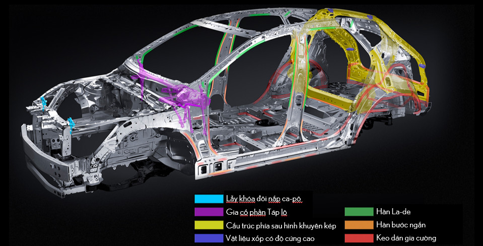 Cấu trúc thân xe Lexus NX 350 F SPORT có độ bền cao, hấp thụ xung lực và bảo vệ hành khách khỏi các tác động ở phía trước, phía sau, hai bên và nóc xe khi xảy ra va chạm.