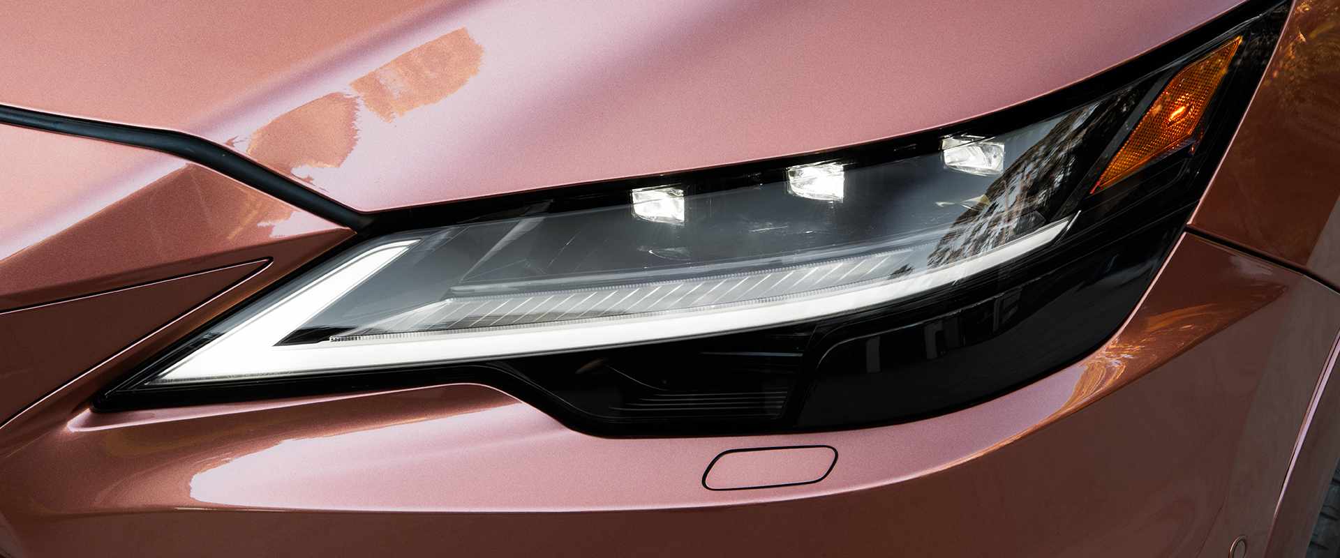 Cụm đèn pha trên RX 500h F SPORT Performance full Led 3 bóng, các chi tiết cụm đèn, đèn LED ban ngày đều có hình dạng hình chữ L, đặc điểm nổi bật của ngôn ngữ thiết kế Lexus. Với công nghệ AHS - Bladescan, đèn pha thích ứng thông minh mới nhất của Lexus, có tính năng tự động phân vùng ánh sáng, ngắt điểm sáng ở các vị trí có phương tiện lưu thông để tránh làm chói mắt các phương tiện đó, tạo ra một tình huống lưu thông an toàn, một chi tiết rất nhân văn của Lexus.