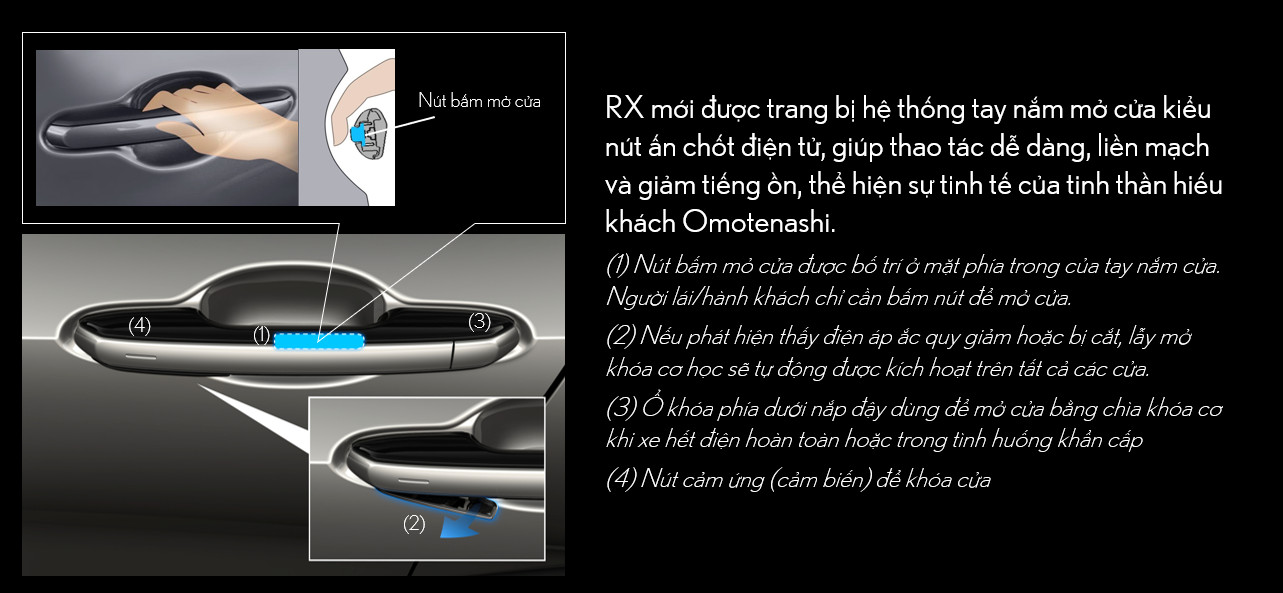 Thiết kế tay nắm cửa điện tử E Latch mới trên RX 500h F SPORT Performance