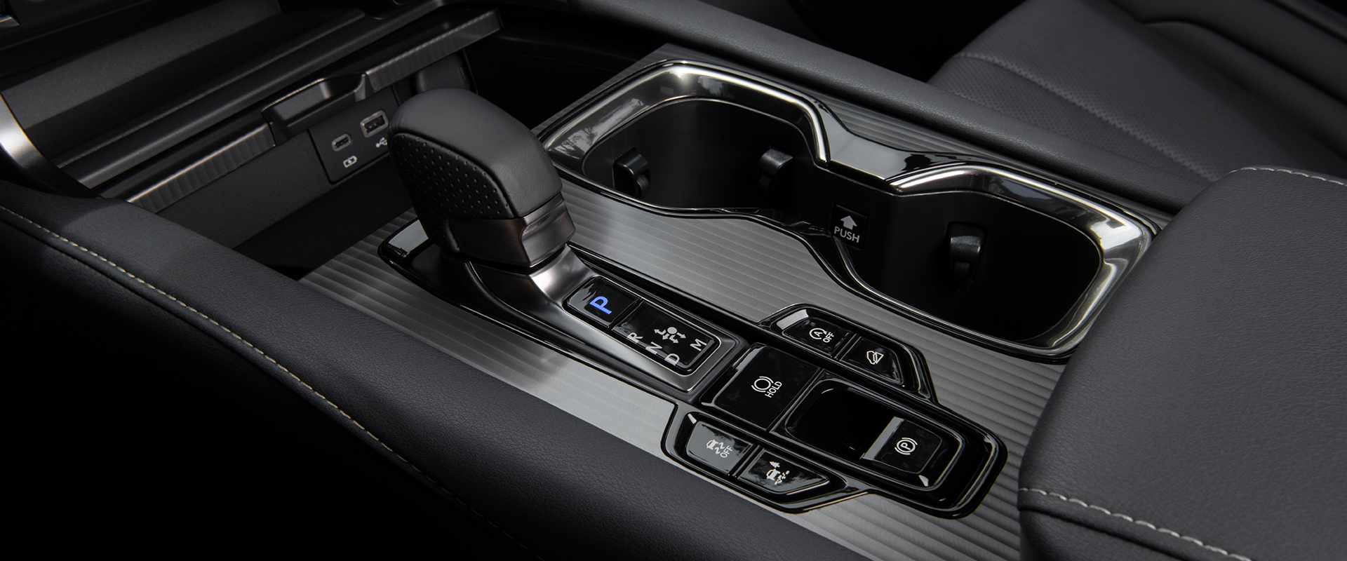 Các nút bấm liên quan đến việc điều khiển xe trong khi dừng được bố trí trong khu vực bệ tỳ tay trung tâm.