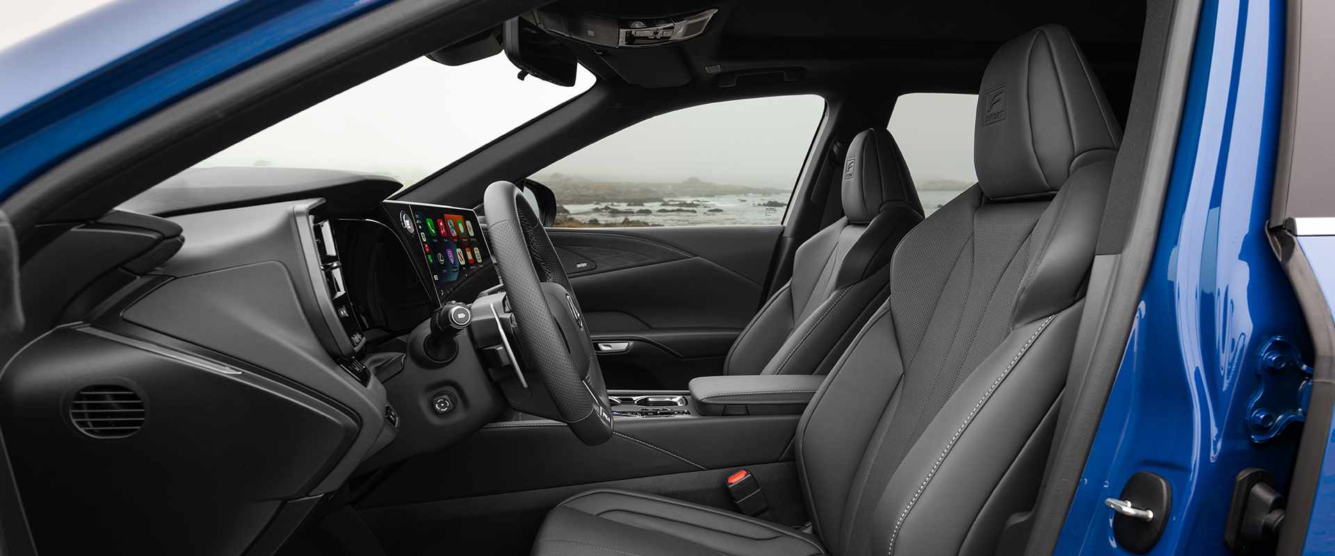 Không gian nội thất của RX 500h F SPORT Performance được thiết kế liền lạc và hiện đại nhưng cũng đầy mạnh mẽ và vững chãi đúng chất một chiếc SUV năng động. Các nút bấm được bố trí thành các vùng riêng biệt phù hợp với hoàn cảnh sử dụng, tạo ra một bố cục chức năng giúp giảm thiểu những thay đổi về tầm quan sát và tư thế trong quá trình vận hành, giúp lái xe thoải mái và an toàn.
